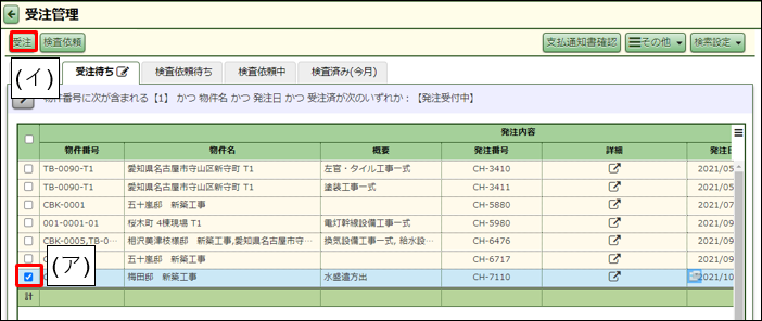 - 受注する発注依頼をチェックで選択してください。 …(ア)