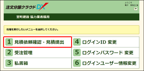 - 「見積依頼確認・見積書提出」画面を開いてください。(画面を開く方法はこちら)