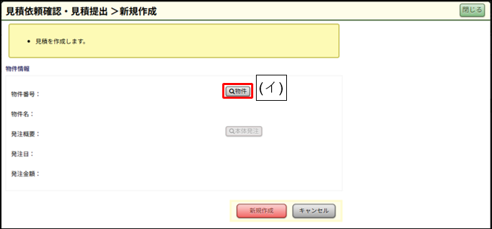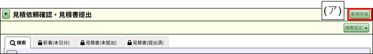 - [新規作成]ボタンを押して、「見積依頼確認・見積書提出>新規作成」画面を表示してください。 …(ア)