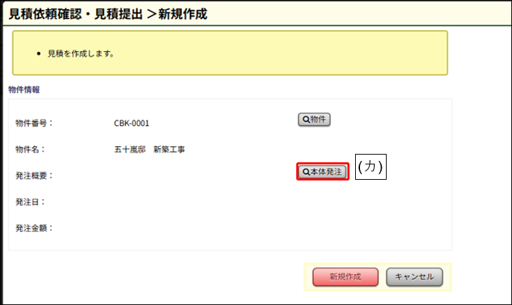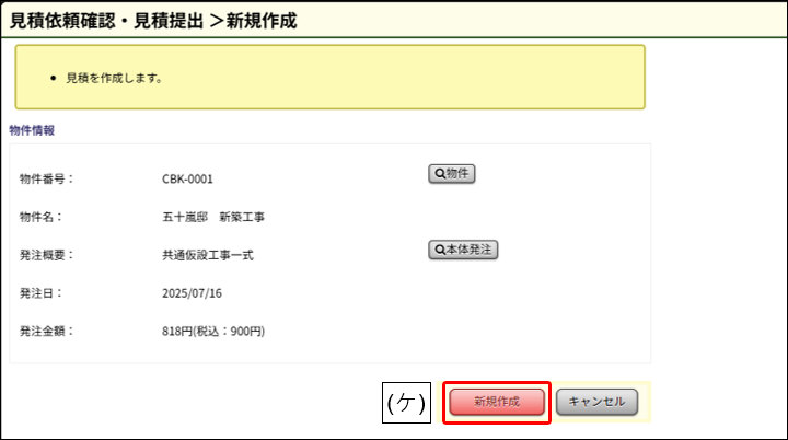 - [新規作成]ボタンを押すと見積が作成されます。…(ケ)