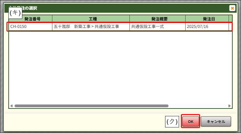 - 協力業者が作成した見積から作成された発注は、本体発注に選択できません。